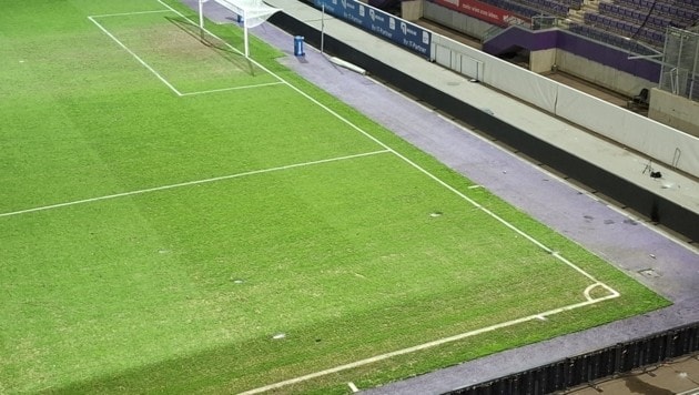 Immerhin: Zumindest Brandlöcher im Rasen sind in Austria-Sektor-Nähe nicht übermittelt – in Rapid-Sektor-Nähe sehr wohl, wie etwa diese Fotos zeigen: